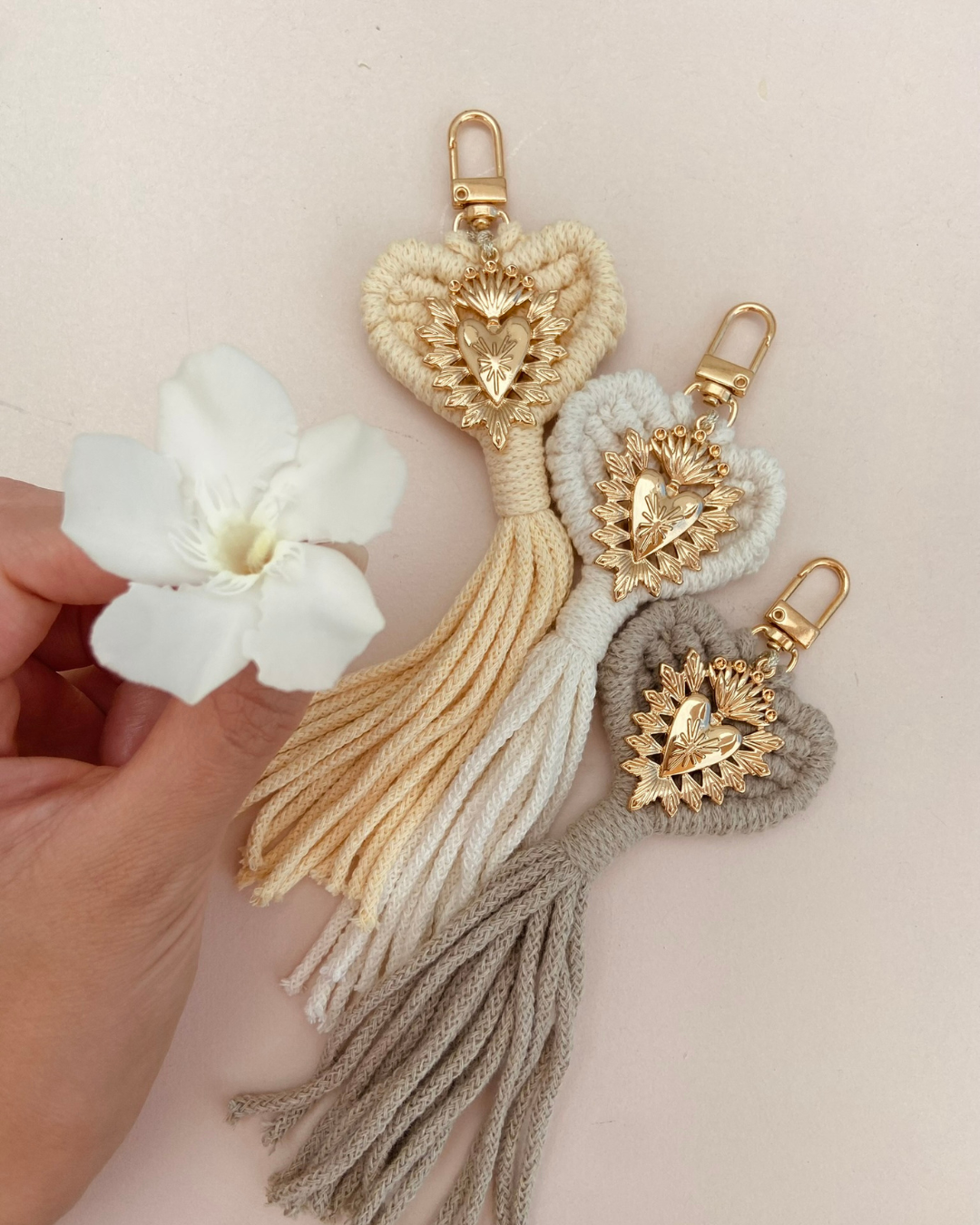Lune Grigri dorée - macramé couleur soleil et breloques