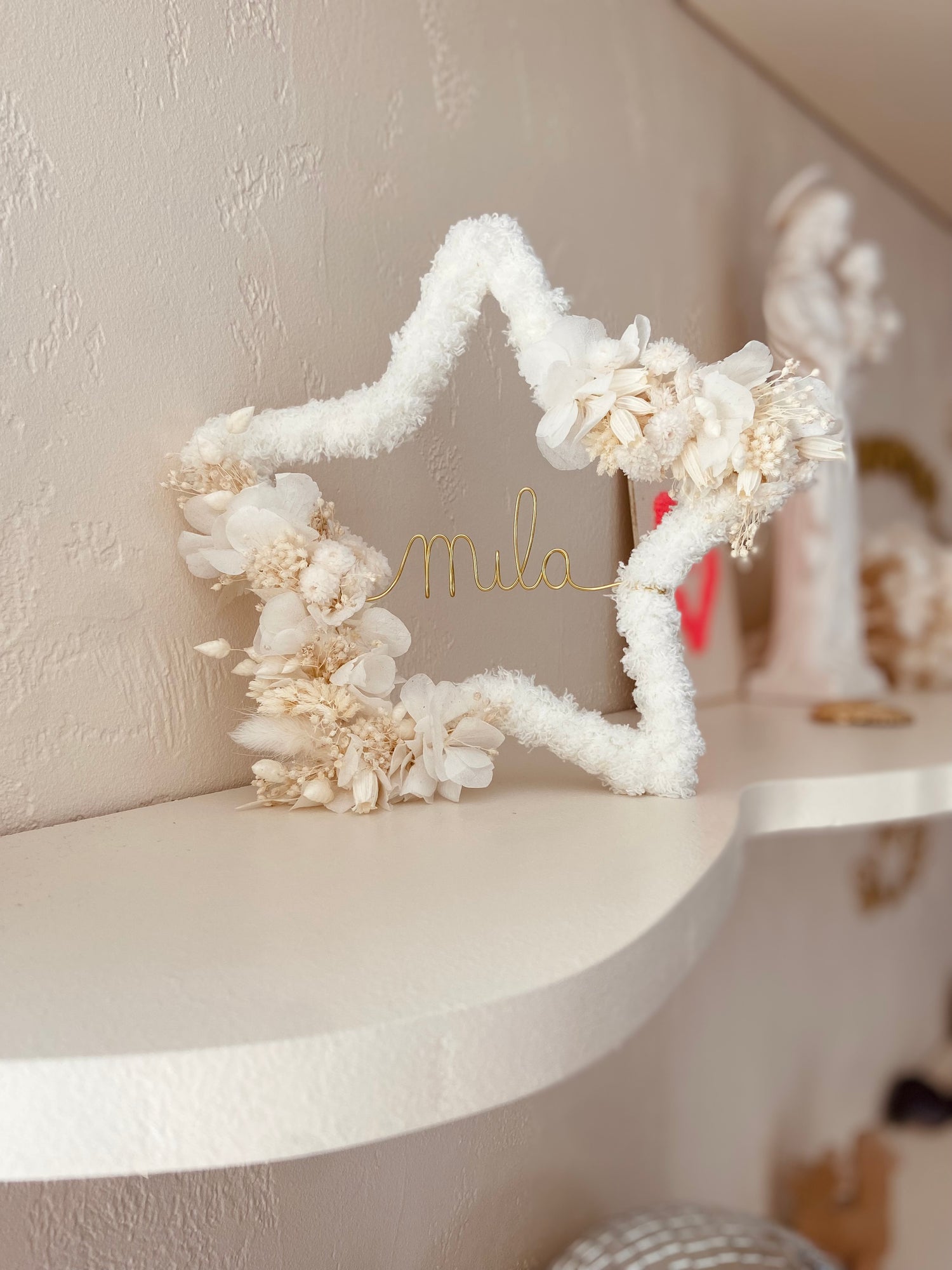 Étoile moumoute blanche avec fleurs séchées blanches personnalisable - Ava